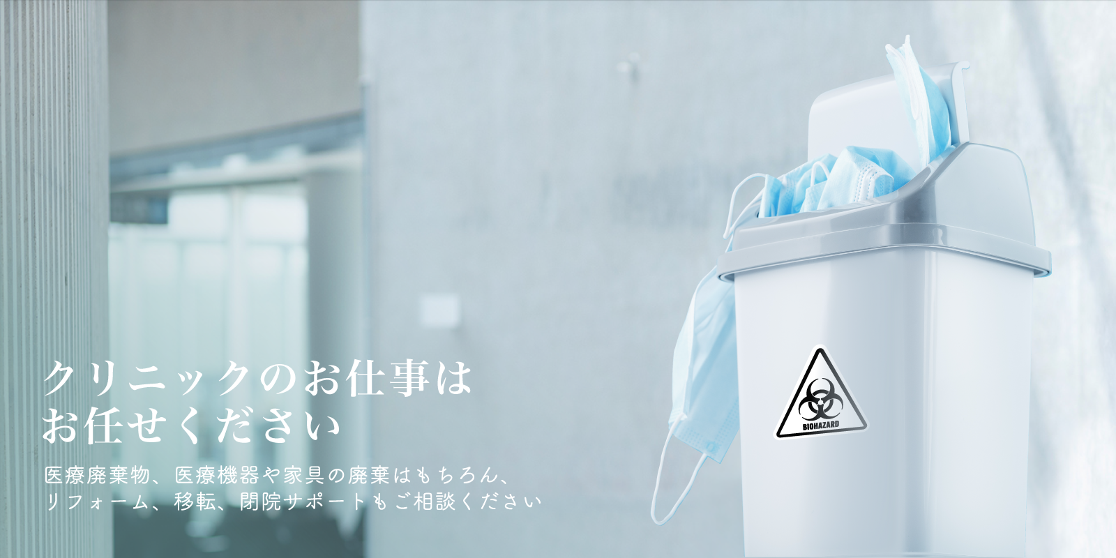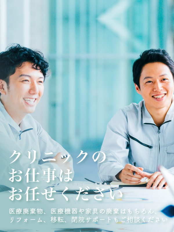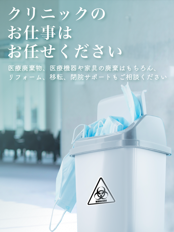 感染性廃棄物、医療機器などの設備什器、要らなくなったレントゲンフィルム、水銀を使用した機器類、紙類、などまずはお気軽にご相談ください。